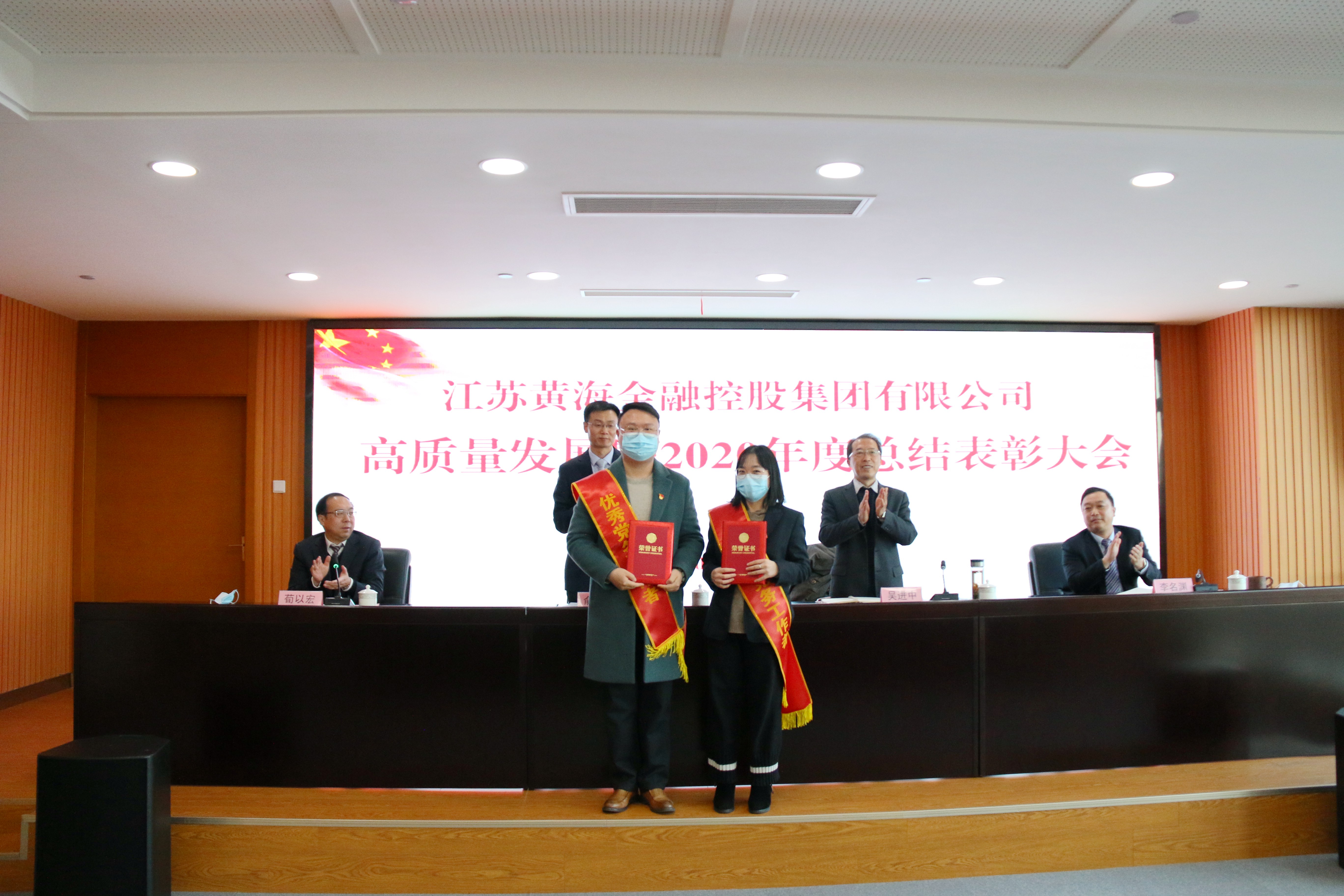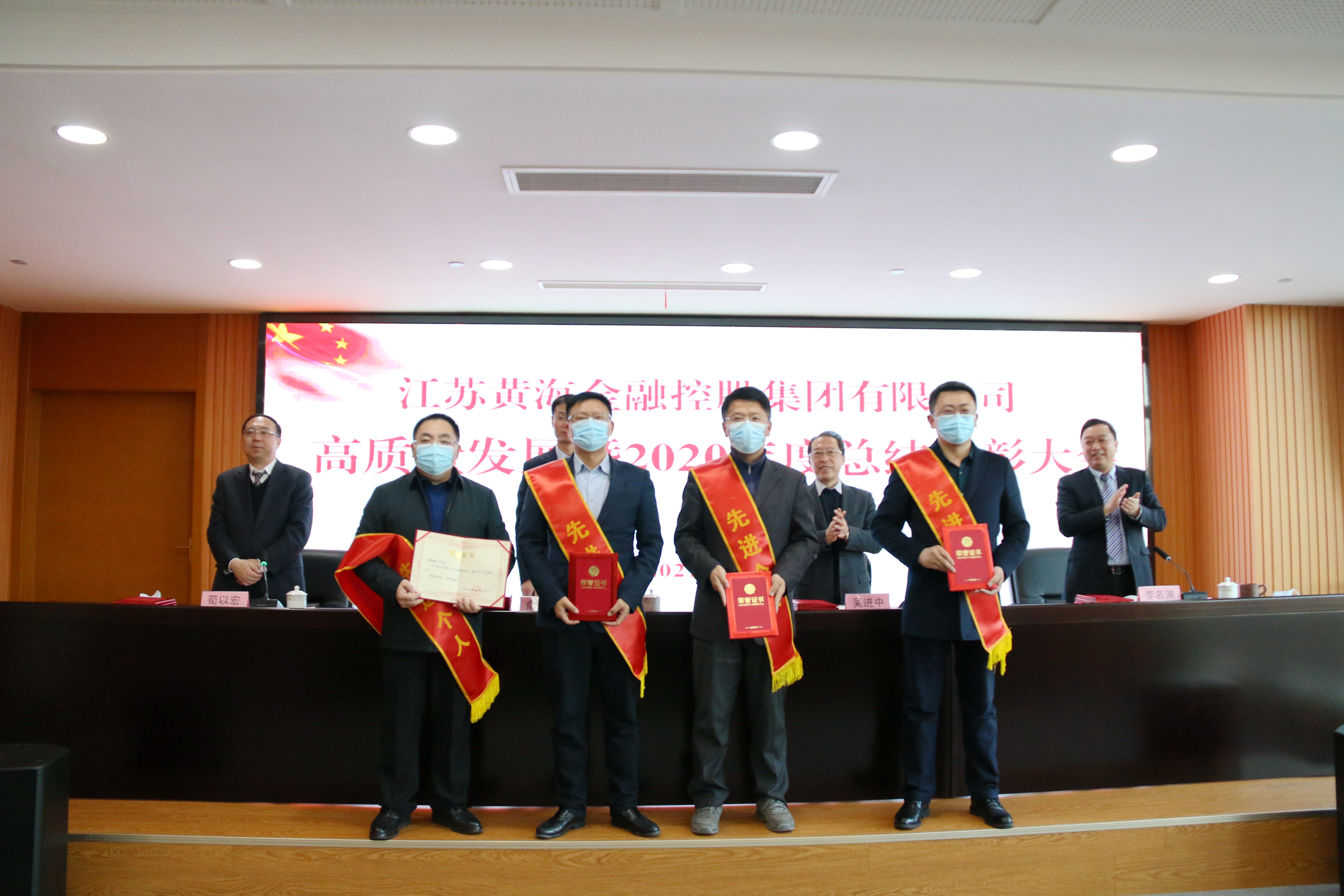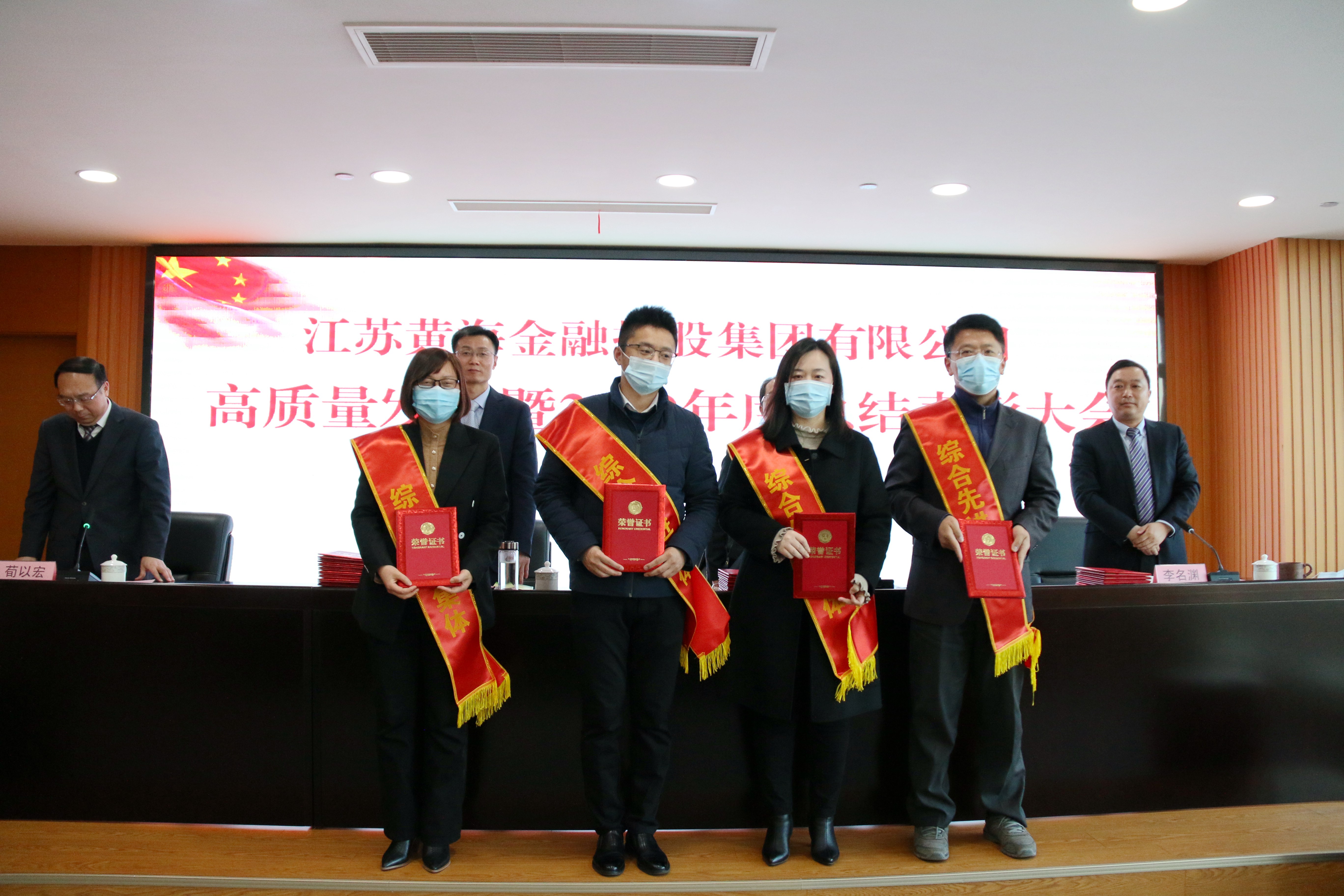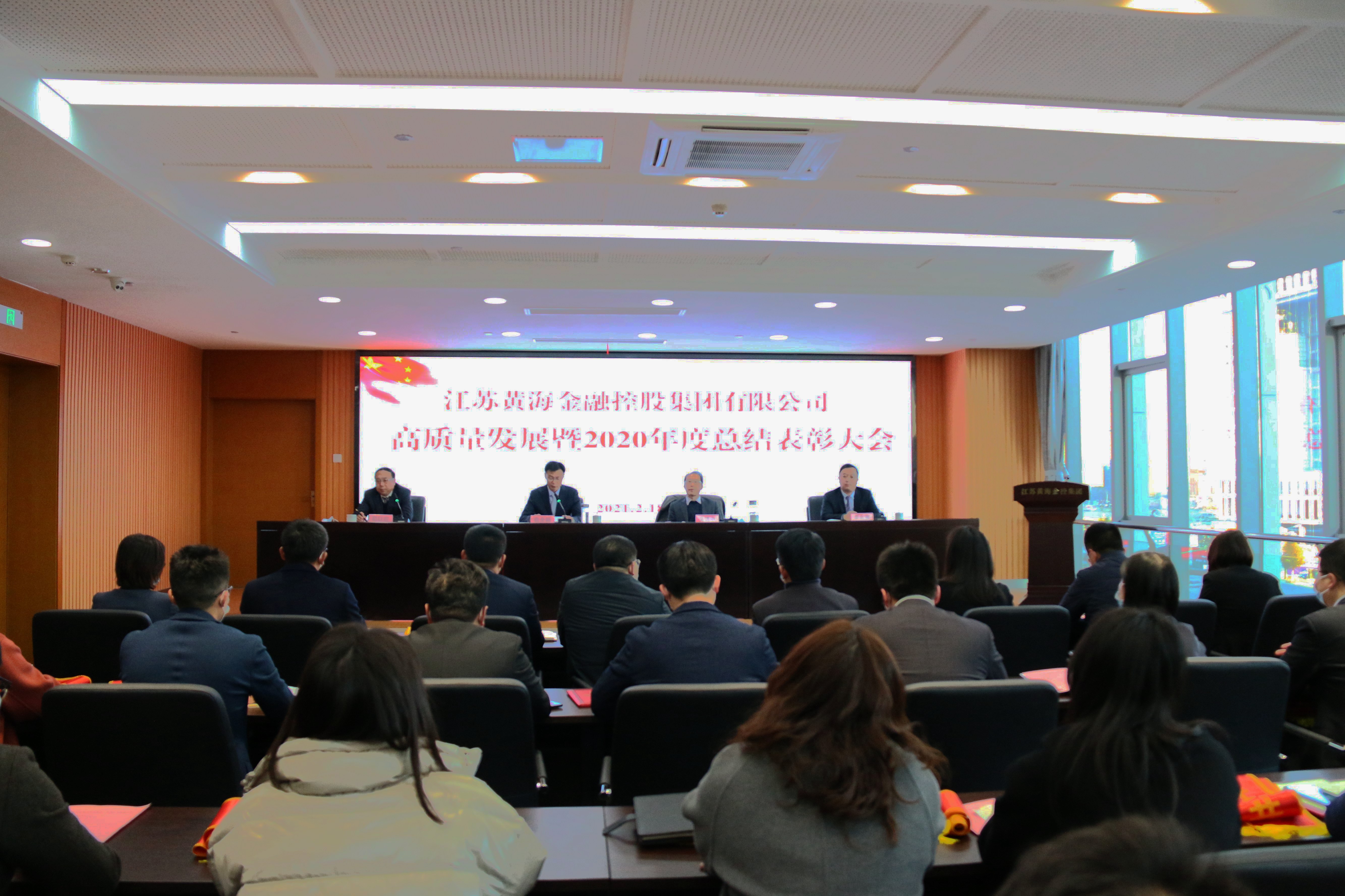 俞全新在讲话中指出,2020年,是黄海金控成立元年,这一年,大家敢想、敢闯、敢拼,迅速打开新局面,实现开好局、起好步,取得较为显著的成绩,这是市委市政府正确领导和市有关部门大力支持的结果,是全集团团结一心、奋力拼搏的结果,是全体员工辛勤付出、善作善为的结果。他代表集团党委向受到表彰的先进集体和先进个人表示热烈祝贺,向所有员工表示衷心感谢!他表示,2021年是“十四五”开局之年,也是中国共产党建党100周年。站在历史的交汇点,黄海金控追梦高质量发展的新征程已全面开启。力争成为全省一流金融投资集团,高质量发展走在全市国企前列的目标,不是喊出来的,而是拼出来、干出来的,需要每一个黄海金控人接续奋斗。他号召集团广大员工以“开局就是决战、起步就是冲刺”的干劲,以“朝受命、夕饮冰”的紧迫感和“昼无为、夜难寐”的责任感,始终顽强拼搏、锐意进取,大力发扬干事创业孺子牛、创新发展拓荒牛、艰苦奋斗老黄牛精神,同心同德、群策群力,干在实处、走在前列,进一步推动集团高质量发展,为加快建设“四新”盐城作出新的更大贡献,以优异成绩庆祝中国共产党的百年华诞。