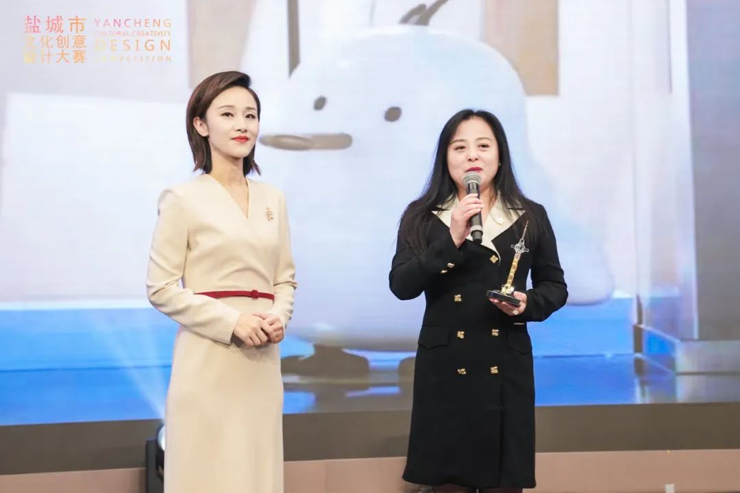 现场,黄海湿地文化公司总经理徐红欣对大赛组委会和主承办单位表示衷心感谢,并对获奖作品作相关介绍:《盐小勺系列文创》依托世界自然遗产资源优势,从艺术性与实用性的角度出发,以盐小勺IP的特有语言打造年轻化的文创好物,让每一位消费者,走进湿地生活,开启美好生活,进一步诠释“人与自然和谐共生”理念。