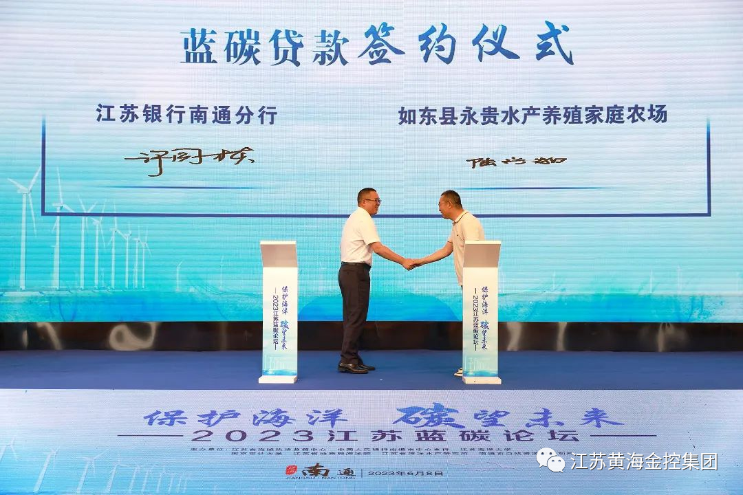 会议期间,江苏银行南通分行与如东县紫菜养殖企业签订碳汇贷协议,这是江苏省管“两沙”海域首笔海洋碳汇贷、南通首笔紫菜养殖碳汇贷款,也是江苏首笔直接面向民营企业发放的海洋碳汇贷。集团所属黄海湿地研究院公司为该紫菜养殖企业所产生的远期碳汇量做出评估,评估结果为紫菜养殖这个重要的蓝碳产业探索了生态产品价值实现路径。