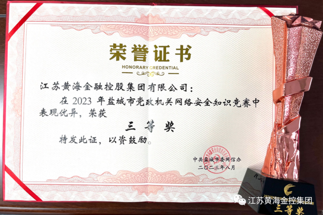 9月11日,2023“网络安全为人民,网络安全靠人民”盐城市网络安全宣传周开幕式在盐城国际会展中心成功举办。开幕式上,主办单位为“2023盐城市党政机关网络安全知识竞赛”活动获奖代表颁奖,老虎机必赢荣获全市第四名、三等奖的好成绩。