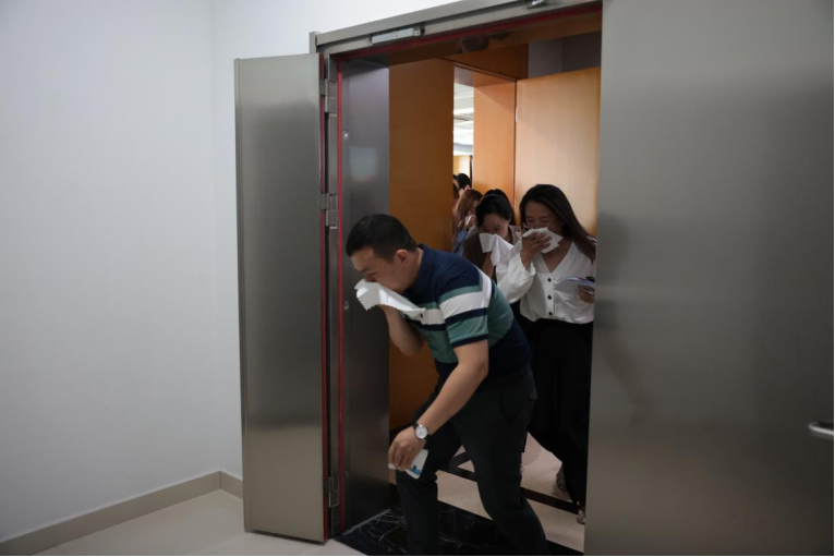 集团组织火情发生的实景演练,进一步提高大家应急逃生技能的掌握程度。活动模拟电动自行车失火,消控室立即启动预案,工作人员和集团安全员迅速指挥引导疏散工作人员,组织扑灭火源。同时,组织集团及所属公司全体人员分批进行灭火器、防火面罩、消防栓等消防设备实操演练,让员工熟练掌握消防器材的使用方法,提高应急处置能力和自救能力。