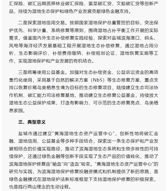 8月15日至16日,在全国生态日期间,江苏省发展和改革委员会发布江苏省生态产品价值实现机制典型案例,其中由集团和人民银行盐城分行支持的“黄海湿地生态资产运营中心”项目成功入选。