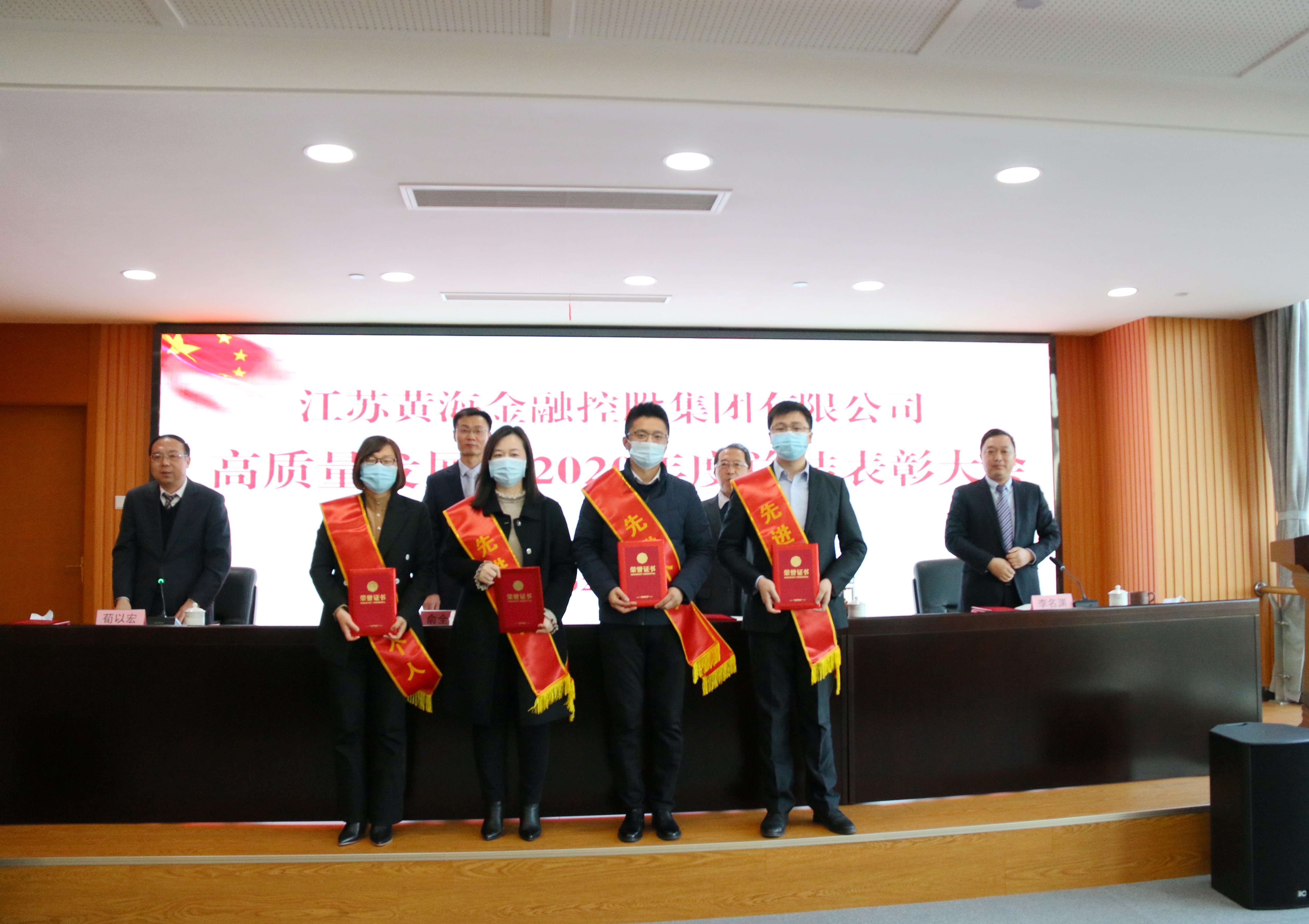 俞全新在讲话中指出,2020年,是黄海金控成立元年,这一年,大家敢想、敢闯、敢拼,迅速打开新局面,实现开好局、起好步,取得较为显著的成绩,这是市委市政府正确领导和市有关部门大力支持的结果,是全集团团结一心、奋力拼搏的结果,是全体员工辛勤付出、善作善为的结果。他代表集团党委向受到表彰的先进集体和先进个人表示热烈祝贺,向所有员工表示衷心感谢!他表示,2021年是“十四五”开局之年,也是中国共产党建党100周年。站在历史的交汇点,黄海金控追梦高质量发展的新征程已全面开启。力争成为全省一流金融投资集团,高质量发展走在全市国企前列的目标,不是喊出来的,而是拼出来、干出来的,需要每一个黄海金控人接续奋斗。他号召集团广大员工以“开局就是决战、起步就是冲刺”的干劲,以“朝受命、夕饮冰”的紧迫感和“昼无为、夜难寐”的责任感,始终顽强拼搏、锐意进取,大力发扬干事创业孺子牛、创新发展拓荒牛、艰苦奋斗老黄牛精神,同心同德、群策群力,干在实处、走在前列,进一步推动集团高质量发展,为加快建设“四新”盐城作出新的更大贡献,以优异成绩庆祝中国共产党的百年华诞。