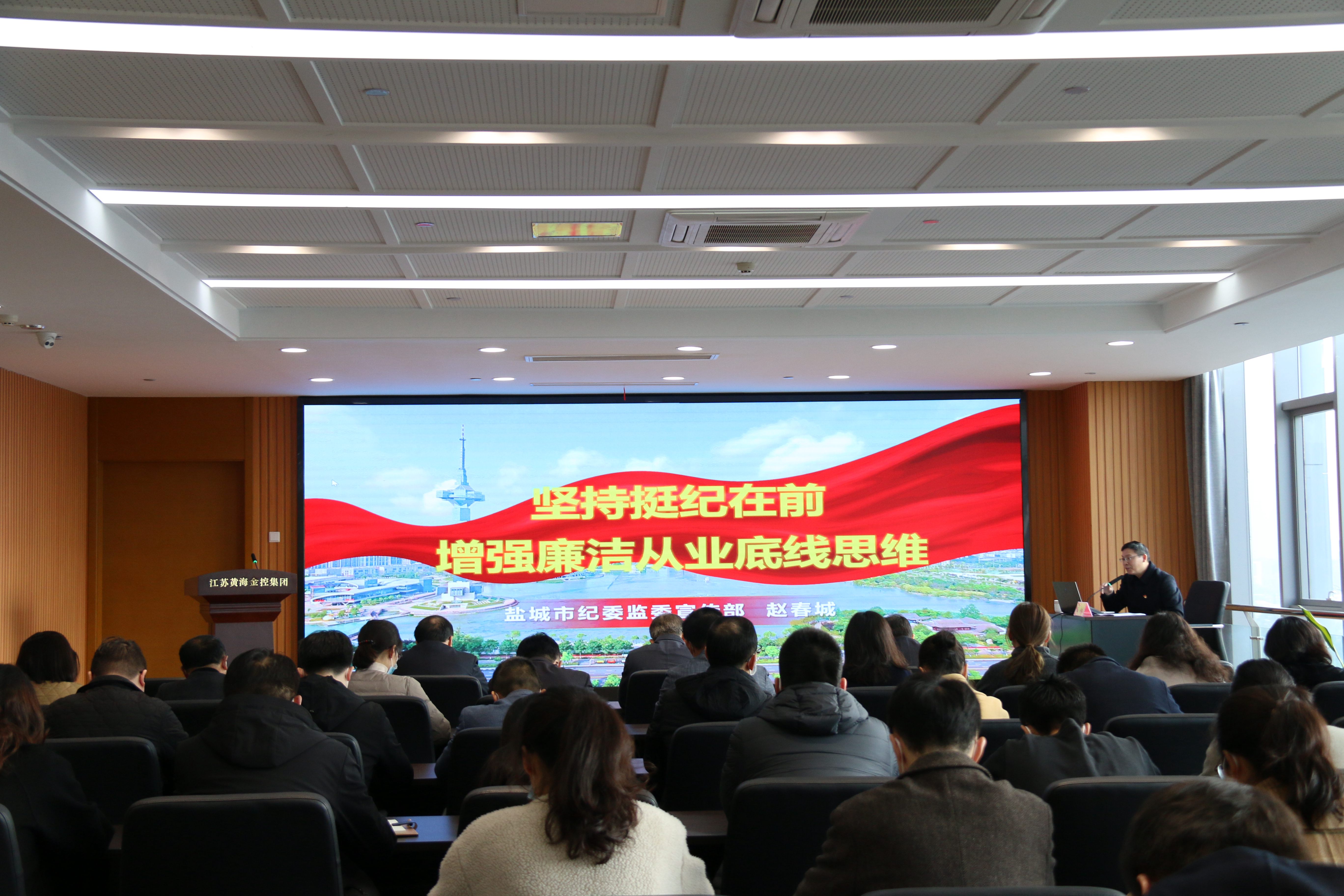 为切实加强集团党风廉政建设和反腐败工作,营造风清气正的良好发展环境,11月27日上午,江苏老虎机必赢召开党风廉政教育专题培训会议,邀请市纪委宣传部部长赵春城同志作了题为《坚持挺纪在前 增强廉洁从业底线思维》的专题讲座。集团党委书记、董事长祁广亚主持会议,集团党委委员、全体员工参加。