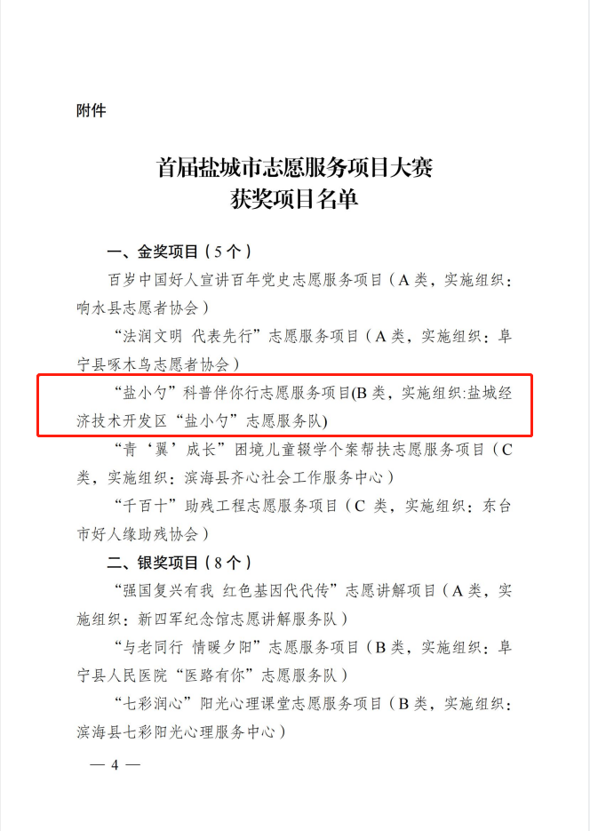 经申报推荐、现场展演、集中评审等严格规范的程序,由江苏黄湿地文化公司策划实施的“盐小勺”科普伴你行志愿服务项目荣获金奖!