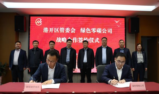 集团与射阳县政府、集团所属绿色零碳公司与射阳港开发区管委会分别签订了战略合作协议。