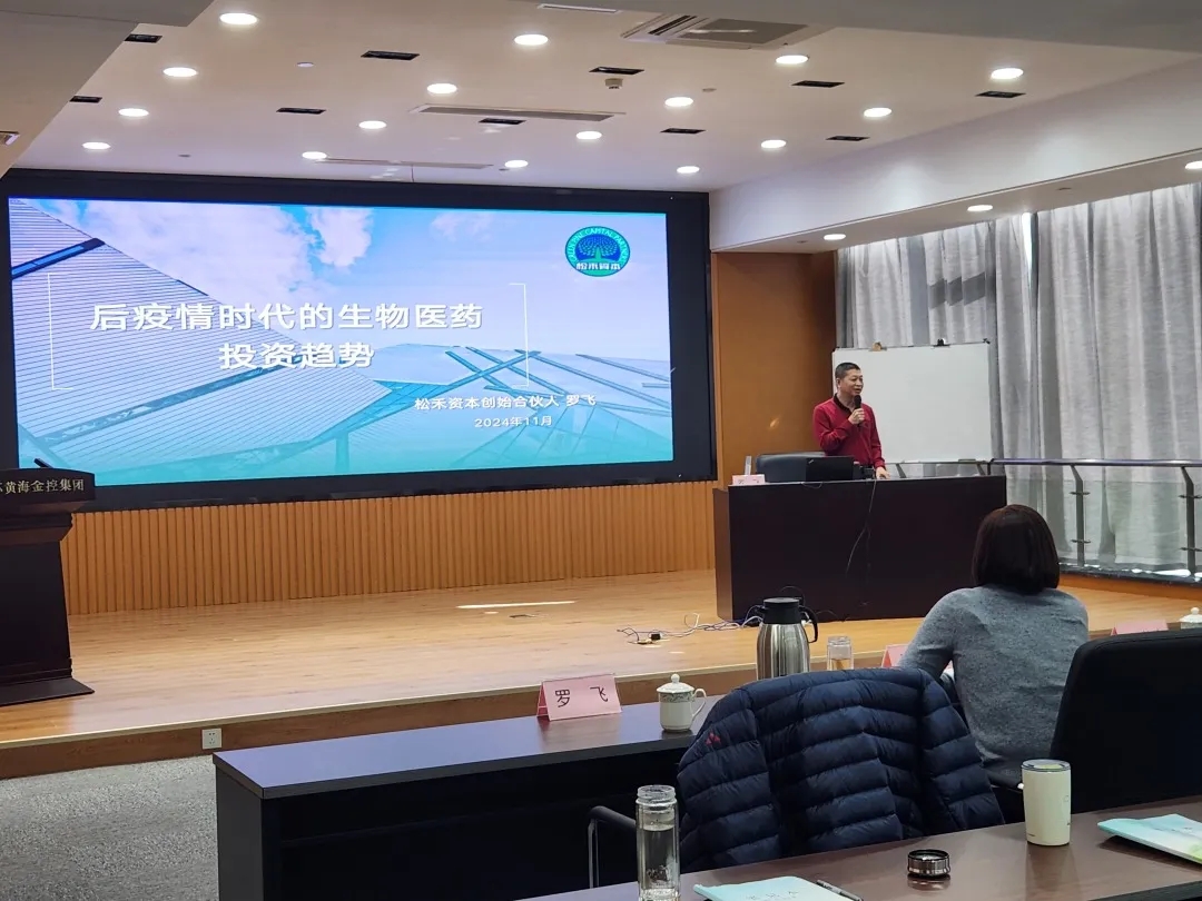 11月30日上午,集团成功举办了第七期“黄海金控产业大讲堂”。松禾资本创始合伙人罗飞先生应邀出席,他就“生物医药投资”这一主题进行了精彩的专题培训,深入探讨了后疫情时代生物医药的投资趋势。