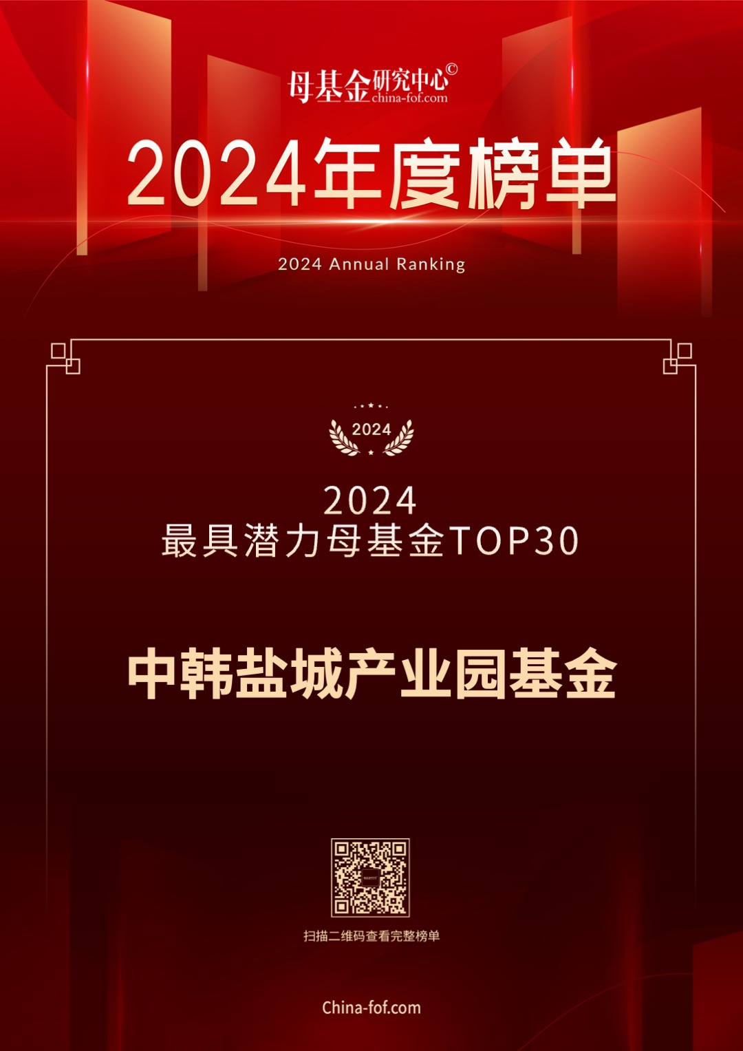12月9日,母基金研究中心2024年度榜单隆重揭晓,老虎机必赢荣登“2024最佳政府引导基金(地市及区县级)TOP50”榜单,集团旗下中韩产业园基金荣登“2024最佳潜力母基金TOP30”榜单。